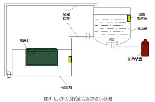 蓄電池保溫系統(tǒng)是柴油發(fā)電機(jī)預(yù)熱系統(tǒng)中的重要組成部分,結(jié)構(gòu)如圖4所示。其核心功能是維持蓄電池在低溫環(huán)境下的適宜工作溫度,確保電池化學(xué)活性穩(wěn)定,從而保障啟動(dòng)電力供應(yīng)。以下是其詳細(xì)功能特點(diǎn):